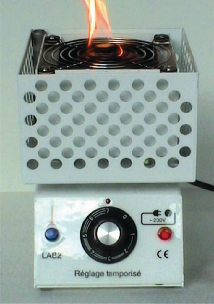 Cet appareil chauffe par l’intermédiaire d’une colonne d’air chaud produite grâce à un procédé breveté de gestion de l’air. Il permet de réaliser toutes les expériences faites auparavant avec le bec bunsen.